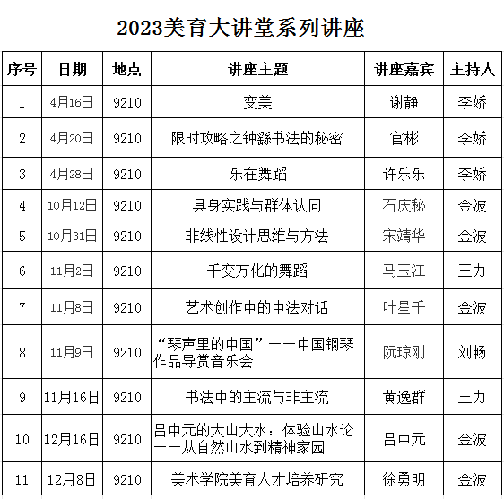 2023年,学校出台《关于加强和改进新时代美育工作的实施方案》,设置《大学美育》必修课,确保学生综合素质基本标准。全校四十个本科专业74个班级均设置《大学美育》核心素养教育必修课,课程旨在了解马克思主义美学的基本原理及新时代美育的意义、任务和途径,树立正确、进步的审美观,培养高尚、健康的审美理想和审美情趣,发展对美的事物的感受力、鉴赏力、创造力,提高在审美欣赏活动和审美创造活动中陶冶情操、完善人格、进行自我教育的自觉性,逐步提升大学生的核心素养。课程教学主要采用“课外活动课程化管理”的模式,对于构建学科教学和校园文化相融合,学校、家庭和社会相衔接的综合实践育人机制,推进德智体美劳全面培养的教育体系建设具重要意义。